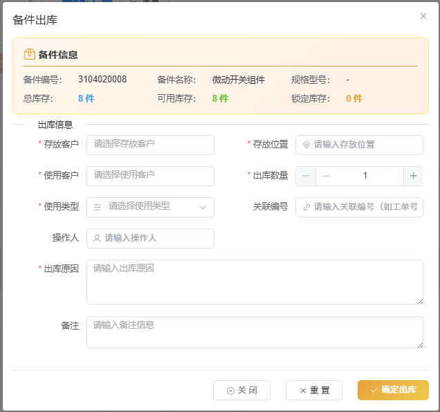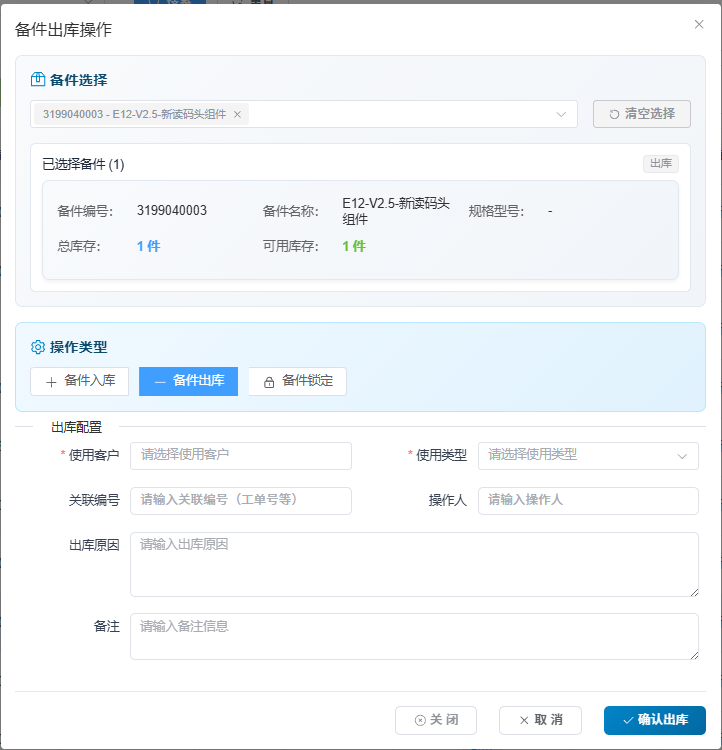 目录 搜索 展开 系统设计思路用户操作手册客户管理客户的业务概览维护计划运维计划检查模板检查项目系统管理用户管理角色管理部门管理岗位管理设备管理供应商管理设备类型管理设备管理备件管理备件运维执行管理工单管理任务管理检查记录管理项目管理项目管理采购单操作手册研发功能说明客户管理客户管理客户业务概览功能说明客户管理项目管理设备管理供应商设备类型设备管理备件管理现有代码2运维计划管理运维计划运维类型统一字段运维模板检查项运维执行管理工单管理设计思路工单类型拆分权限设计相关文件详情工单重新设计最小改动方案技术文档任务管理任务管理的技术文档通用组件与功能说明视频播放组件数据字典附件统一上传客户/设备/备件UnifiedAttachmentUpload客户搜索组件第二版技术员选择组件第二版通用详情确认对话框性能优化Redis缓存问题客户缓存模板缓存数据权限根据客户来控制权限系统角色体系设计一键部署配置管理使用手册统一配置管理实施总结快速安装脚本Mysqll连不上的问题阿里云配置SSL证书服务管理使用手册数据库数据库表说明 暂无相关搜索结果! 阅读次数:21 本文档使用 MinDoc 发布 备件 作者:聂盼盼 创建时间:2025-10-21 14:52最后编辑:聂盼盼 更新时间:2025-10-28 19:53